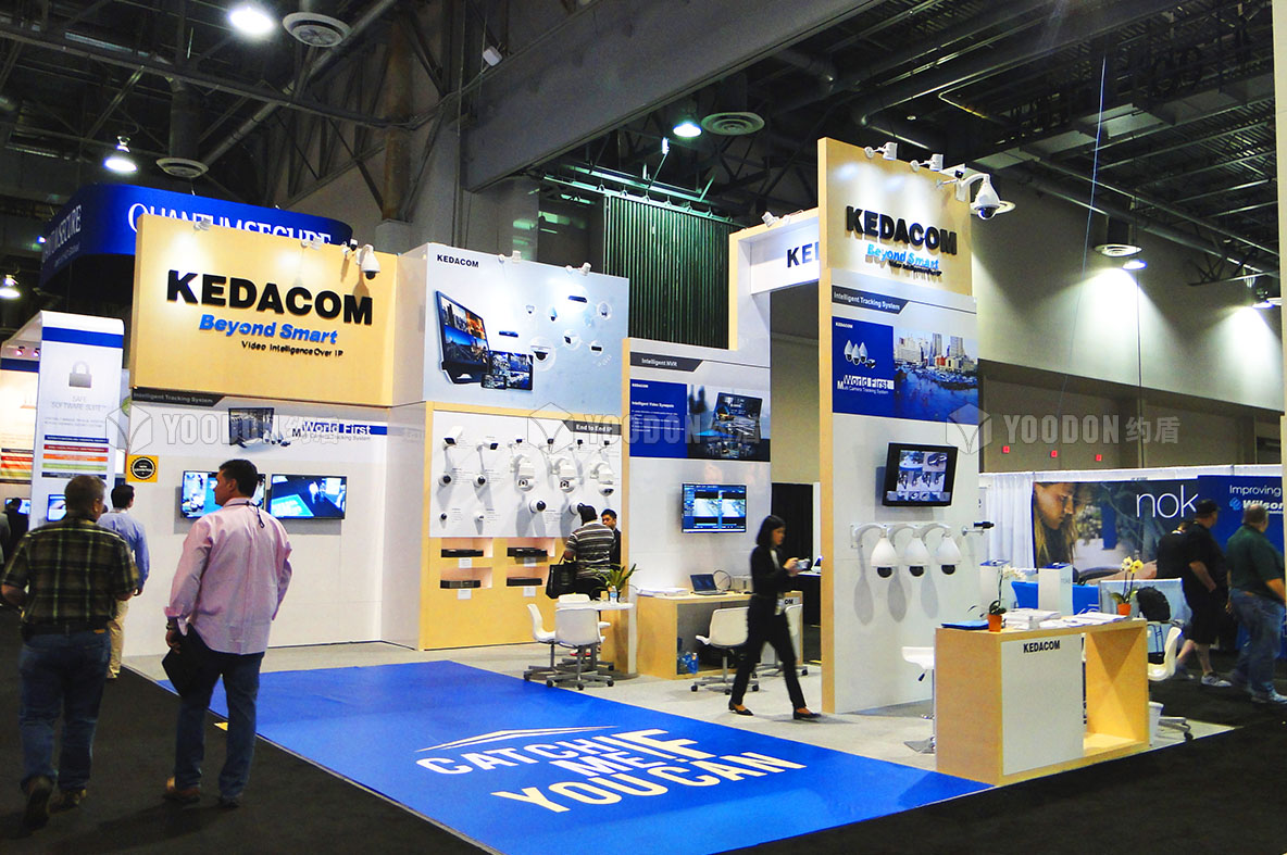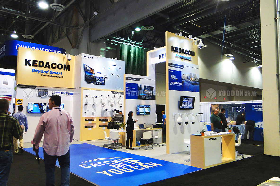 本屆展會約盾展覽為科達設計搭建展臺,蘇州科達科技股份有限公司是領先的視訊與安防產品及解決方案提供商,致力于以視頻會議、視頻監控以及豐富的視頻應用解決方案幫助各類政府及企業客戶解決可視化溝通與管理難題。公司前身科達通信成立于1995年,總部位于蘇州。2012年,公司整體改制為股份有限公司。2016年12月1日,公司在上海證券交易所主板掛牌上市(股票簡稱:蘇州科達,股票代碼603660)。